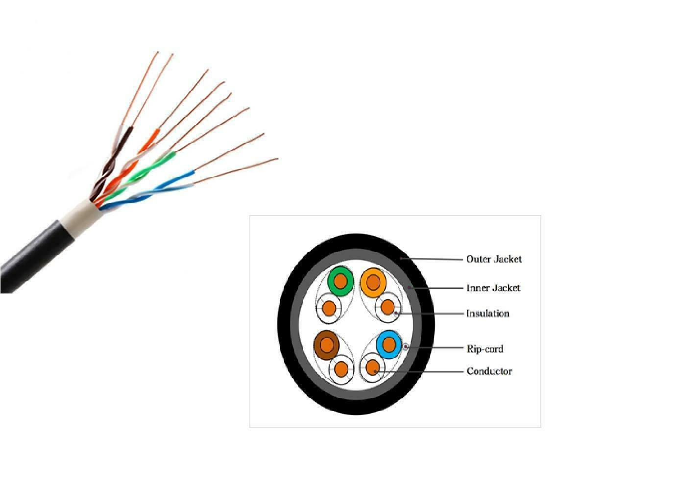 Constructed with 2×4 pairs of 0.45mm solid bare copper conductors, the cable includes PE insulation, a rip cord, an inner PVC jacket, and an outer PE jacket for added protection and durability. Designed with no overall or conductor screening, it delivers smooth and uninterrupted data transmission.