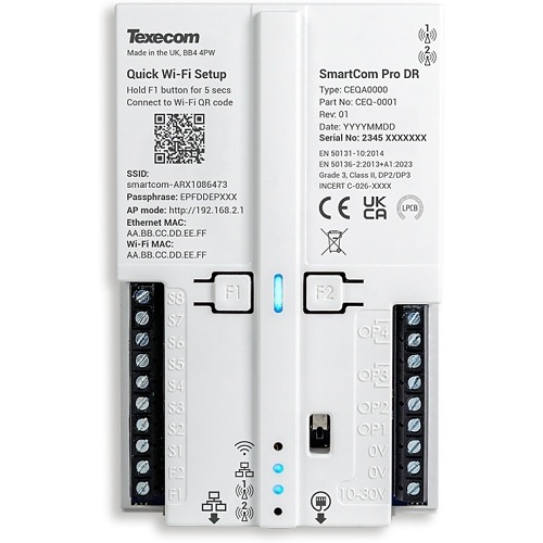 The Texecom SmartCom Pro Ethernet or WiFi Single Path Communicator (CEN-0001) is part of Texecom’s advanced SmartCom Pro range, designed to provide reliable and secure alarm signalling for both new and existing installations. Built for compatibility with any intruder panel, it delivers a professional gateway to primary alarm communications with your chosen Alarm Receiving Centre (ARC).